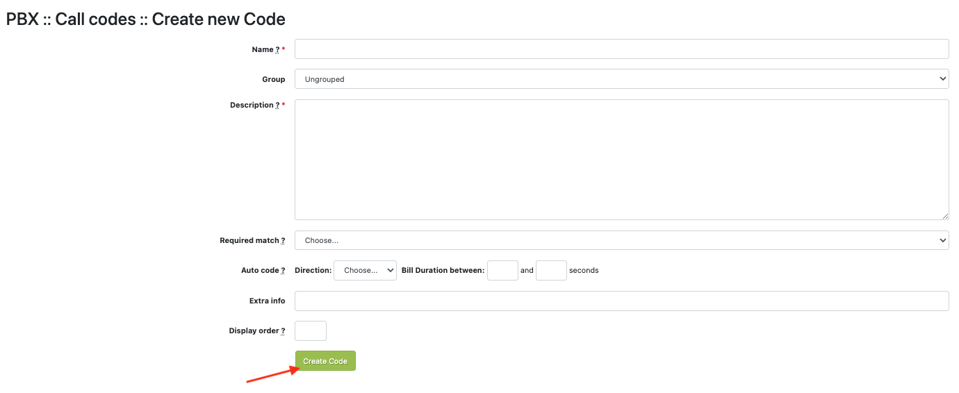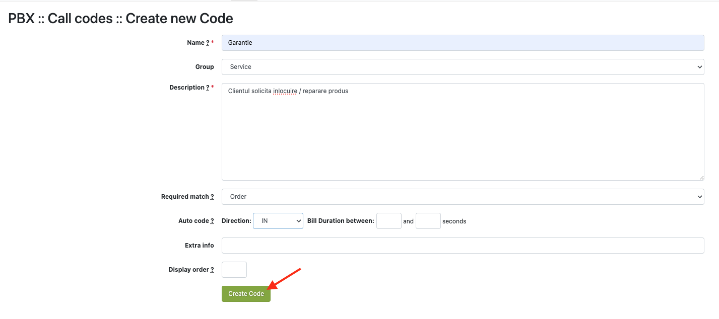 The PBX /Call codes section allows you to:- define your own Call Codes, which agents will associate with any incoming or outgoing call (e.g.: sale, complaint, etc.)