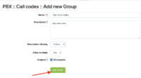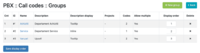 Section PBX /Call codes : Groups allows you to group call codes and select the display mode of the group description and the added call codes