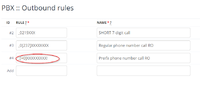 Rules for permitted outbound calls, at the PBX level, can be created in this section.