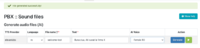 To automatically generate an audio file, in the PBX/Sound Files => Generate audio files (AI) section you must fill in the following: