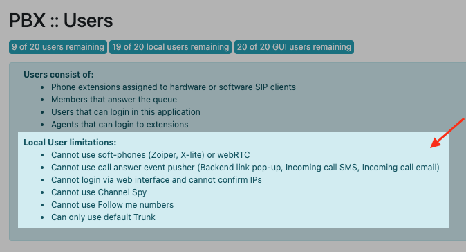 - Extension: Insert the extension to which the user can dial; this needs to be unique per user. Leave blank to be generated automatically.