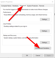 2. Select the Advanced tab and press the buttonEnviroment Variables¶