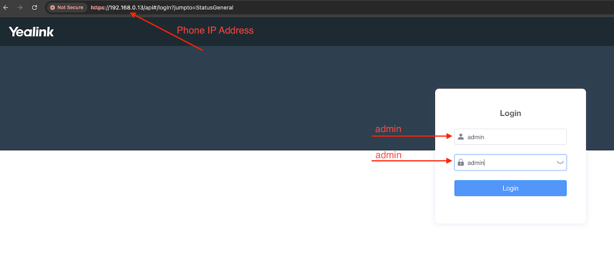2. Access the PBX interface in order to configure the Yealink phone¶