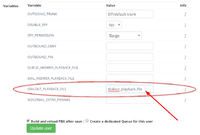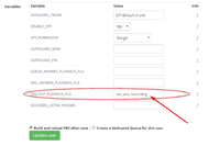Pentru activarea optiunii, completati denumirea fisierului we_are_recording, ca valoare a variabilei DIALOUT_PLAYBACK_FILE din PBX/Users.