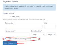 - Acceptati optiunea Salvează acest card pentru plăți automate
