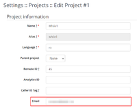 • Remote ID - ID-ul unic al proiectului, preluat dintr-o aplicatie externa (CRM, sistem de ticketing). Puteti lasa necompletat, fiind preluat aliasul proiectului.
