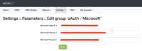 Accesati modulul Settings :: Parameters :: 'oAuth - Microsoft' si completati datele aplicatiei Microsoft create: