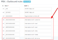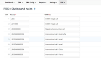 Din aceasta sectiune puteti crea reguli pentru tipul de apeluri iesite permise, la nivel de centrala.
