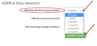 Valorea CDR data soft delete grace period defineste, per Proiect, la ce interval de timp de la momentul marcarii elementelor (CDR, call recordings) ca sterse, acestea vor fi eliminate complet din baza de date (purged).